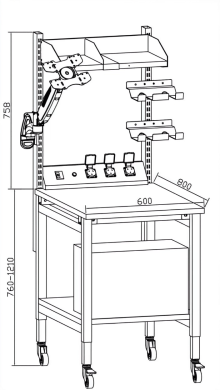 - Label Printer Rack with Arm – Sturdy steel shelf for a battery-powered label printer, box knife, or other essential tools.